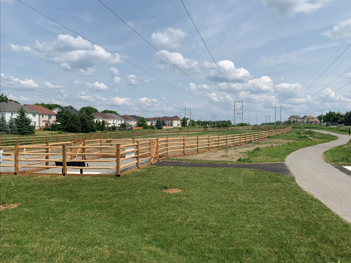 We received a number of emails from residents who have been watching the construction of the dog park in the Kanata North Hydro Corridor, just off Whernside Terrace. In case you were counting, that project started 7 years ago. It has been frustrating, to say the least. However, it is going to be lovely. The only challenge now is waiting for the grass to grow and its root system to be established enough to withstand the dog traffic! We were hoping to see it in use sooner, but we may have to just look at the park until next spring. By then the grass should be thick enough to have it formally opened for use. We will keep you updated regarding when it will be opened.